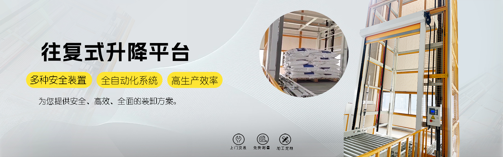 往復式提升機是由鏈條帶動,通過變頻調速控制電機,便提升轎廂上下往復運動.提升轎廂上配有傳動機構,以便被輸送物自動進入升降機的提升轎廂上。該類提升機具有控制先進,性能可靠,提升轎廂定位精度高等特點。